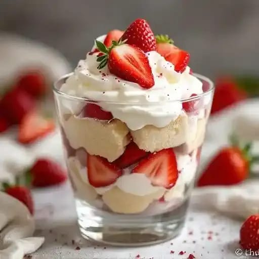 Indulge in our Strawberry Angel Food Cake Parfait, a delightful layering of light and fluffy angel food cake, luscious strawberries, and velvety whipped cream.