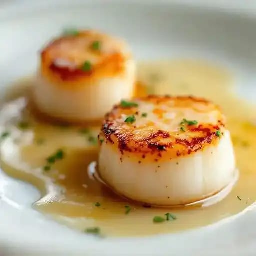 Succulent North Atlantic scallops, perfectly seared to enhance their natural sweetness and served with a drizzle of lemon butter sauce.