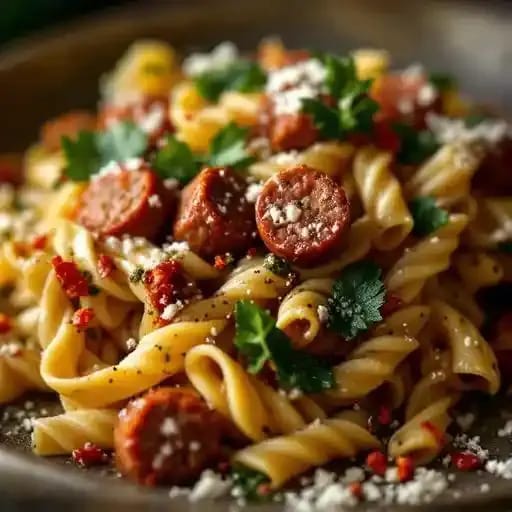 Gemelli pasta, house-made sausage, sun-dried tomato pesto, fresh ricotta cheese, and red pepper flakes for a slight spice.