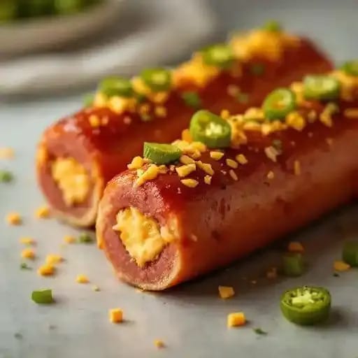 Spicy hot links generously stuffed with creamy cheddar and zesty jalapeños, delivering a bold flavor explosion in every bite.