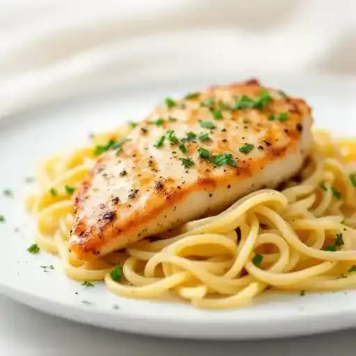 Tender chicken piccata served over a bed of zesty lemon pepper pasta, creating a delightful balance of flavors.