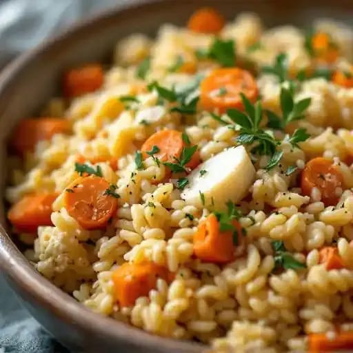 roasted cauliflower. carrots. orzo pasta. parmesan cheese. fresh herbs (vegetarian)