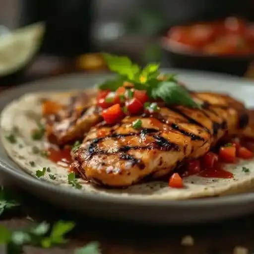 Savory chicken marinated in smoky chipotle sauce, grilled to perfection and served with a side of fresh salsa.
