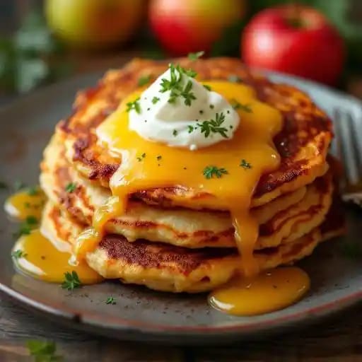 Crispy potato pancakes served with apple sauce and sour cream.