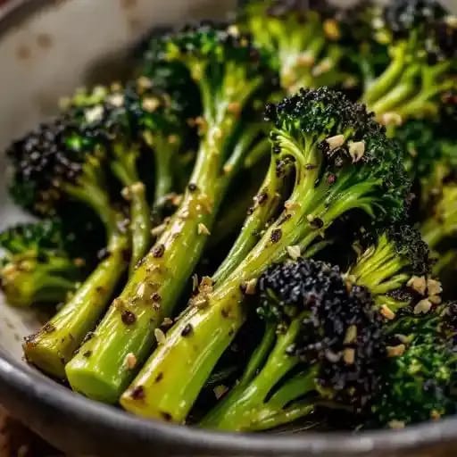 Charred broccoli florets tossed with lemon, garlic, and chili flakes, finished over open flame or high-heat roast.