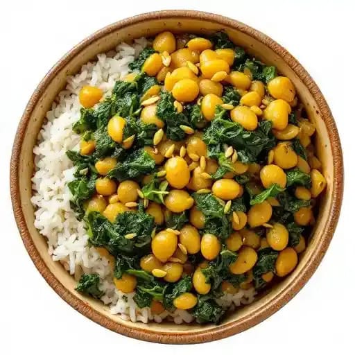 A warm, spiced Indian stew featuring hearty lentils and tender spinach.