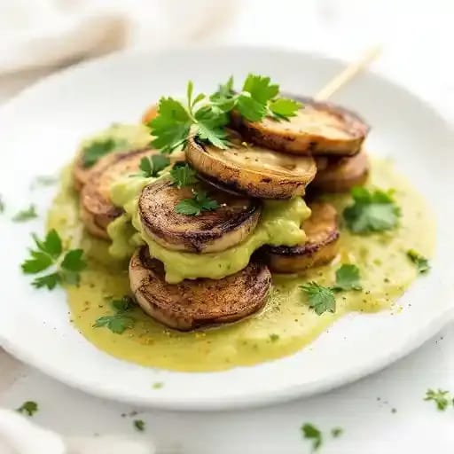 Smoky, marinated oyster mushrooms grilled to perfection, offering a savory, plant-based twist on a classic kebab.