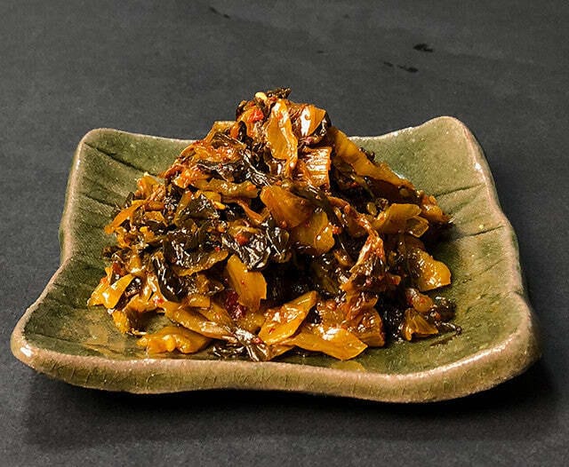 A savory Japanese pickle made from mustard greens, fermented with a spicy kick of karashi mustard.