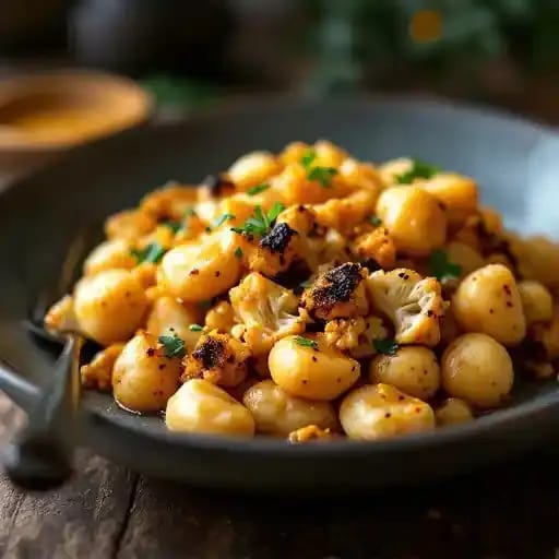 Delight in our tender gnocchi tossed with roasted cauliflower and a zesty orange sauce, creating a harmonious blend of flavors and textures.